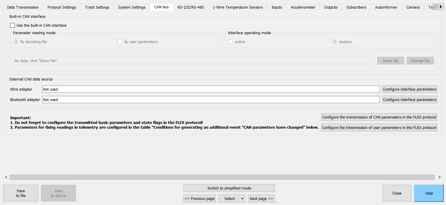 Description of settings for each of the sources is given below in the Built-in CAN interface and External CAN data source sections.